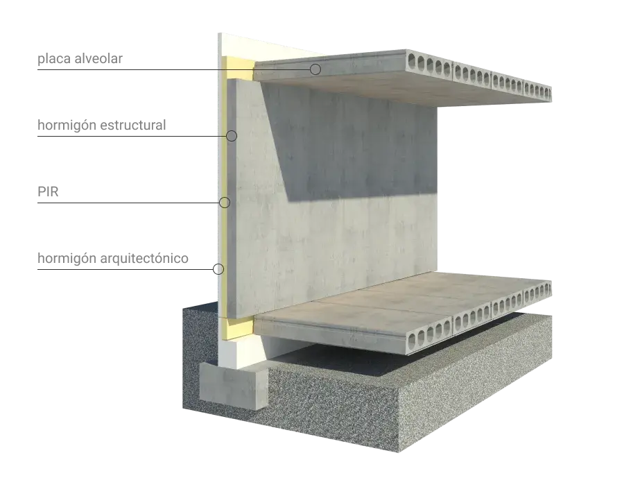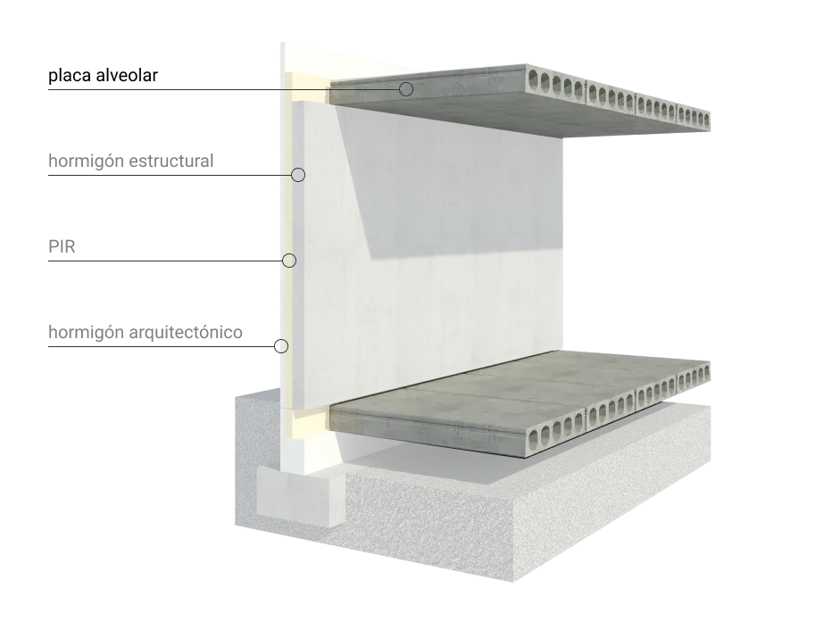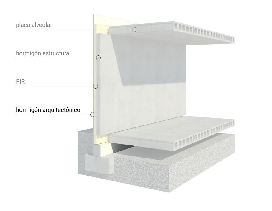 Sistema industrializado 2D que se adapta a cualquier tipo de diseño arquitectónico, completamente a medida. Concebido para edificios multiplanta de cualquier tipología y uso. Existe la posibilidad de incorporar a los paneles en fábrica otros elementos como ventanas, remates, instalaciones…