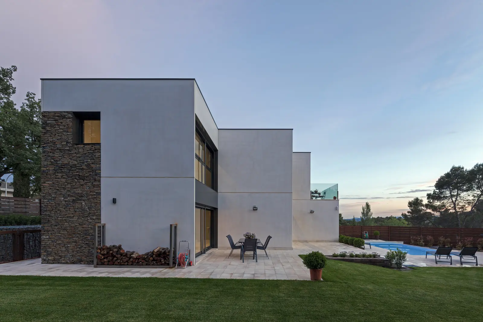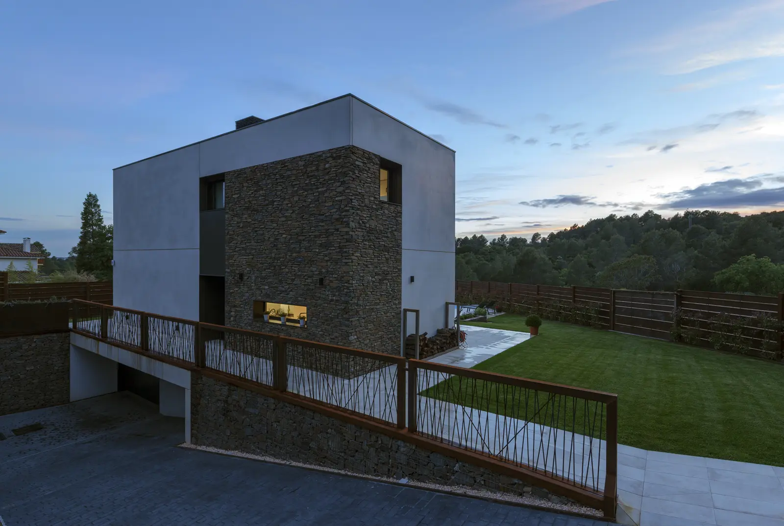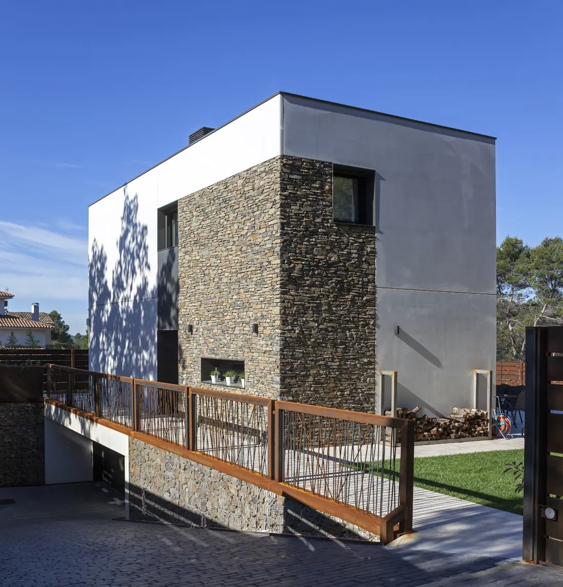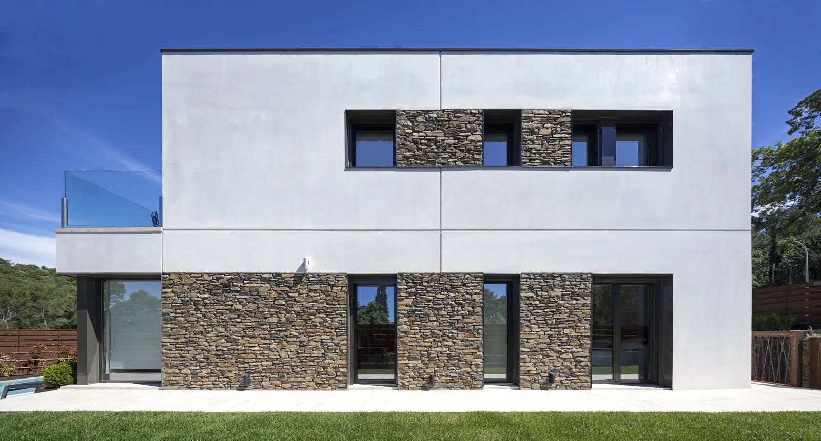 Diseño racional, materiales nobles y ejecución precisa: una vivienda Hormipresa que combina piedra natural, hormigón y líneas limpias para quienes valoran la arquitectura sólida, bella y en sintonía con el paisaje.