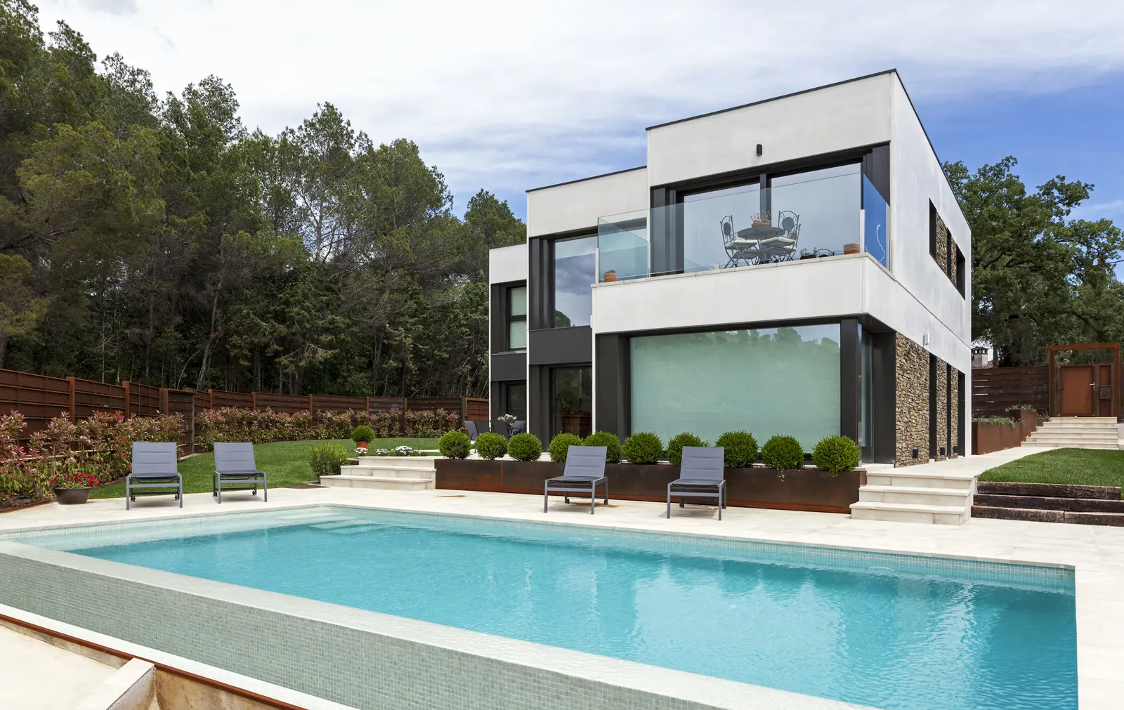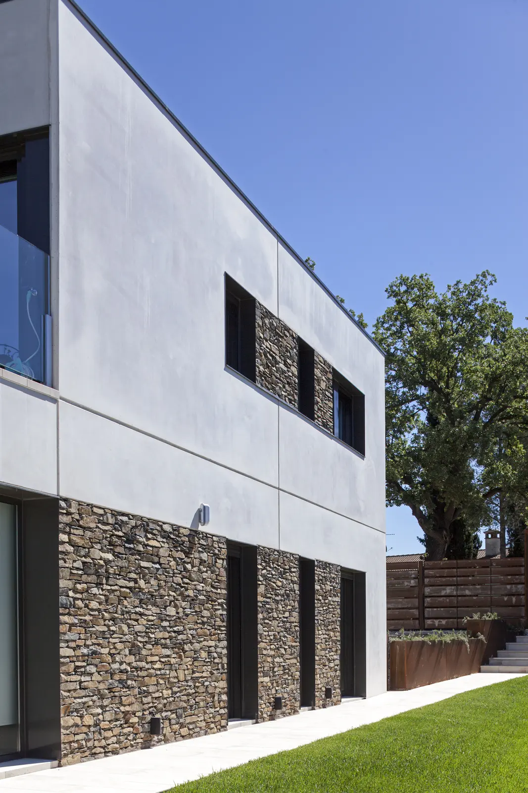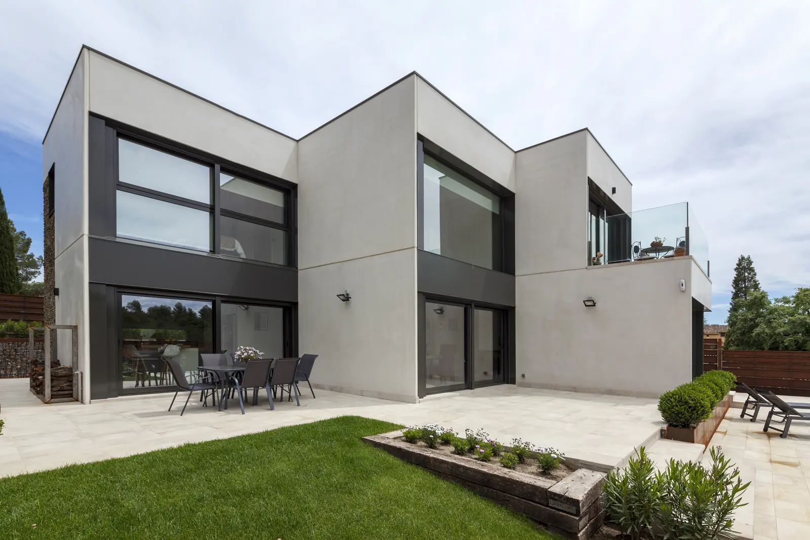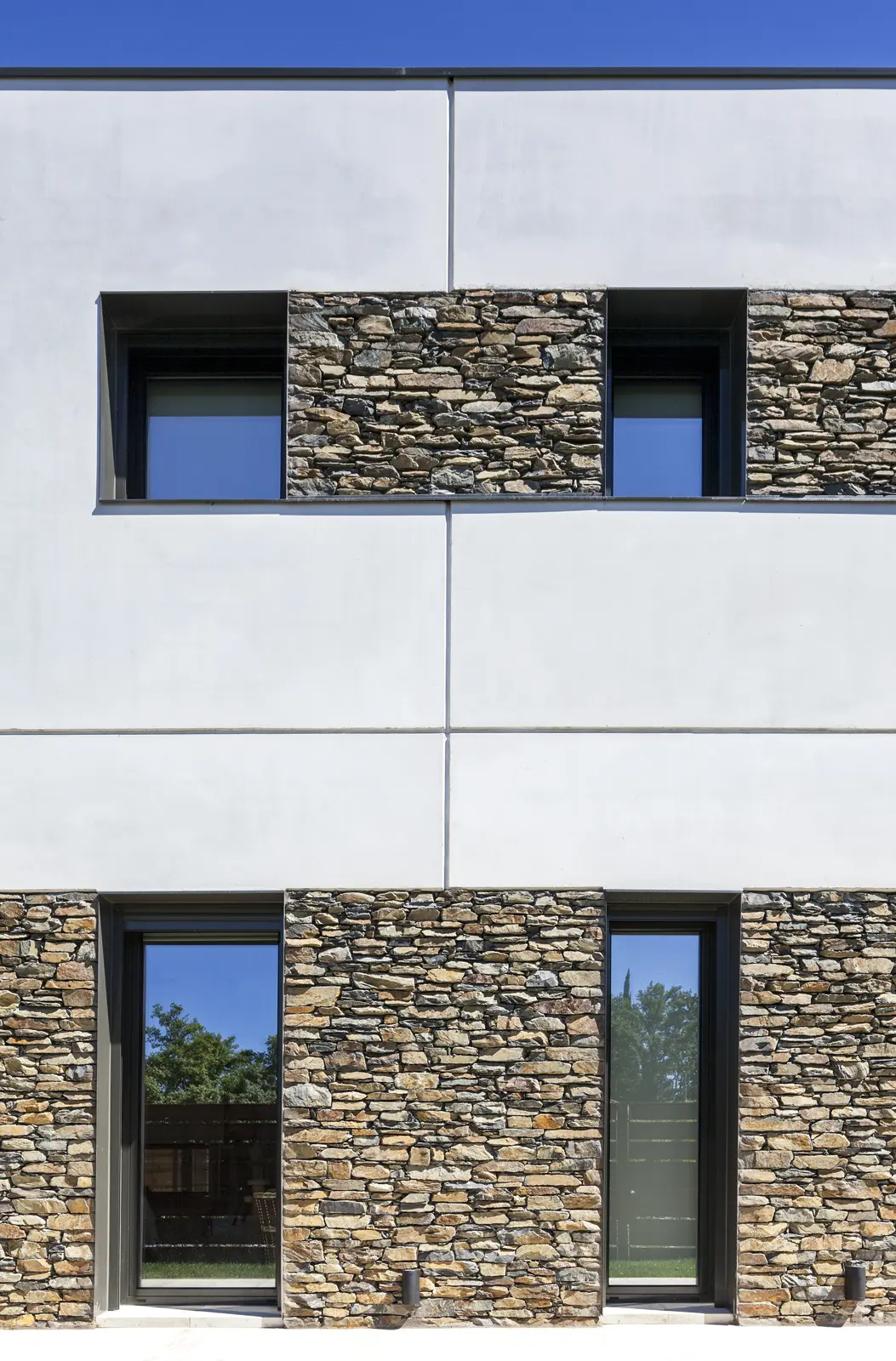 Diseño racional, materiales nobles y ejecución precisa: una vivienda Hormipresa que combina piedra natural, hormigón y líneas limpias para quienes valoran la arquitectura sólida, bella y en sintonía con el paisaje.