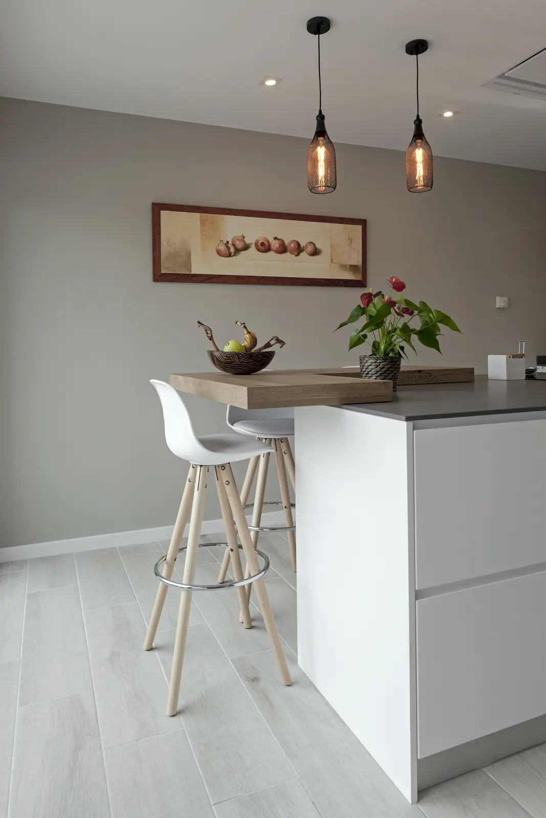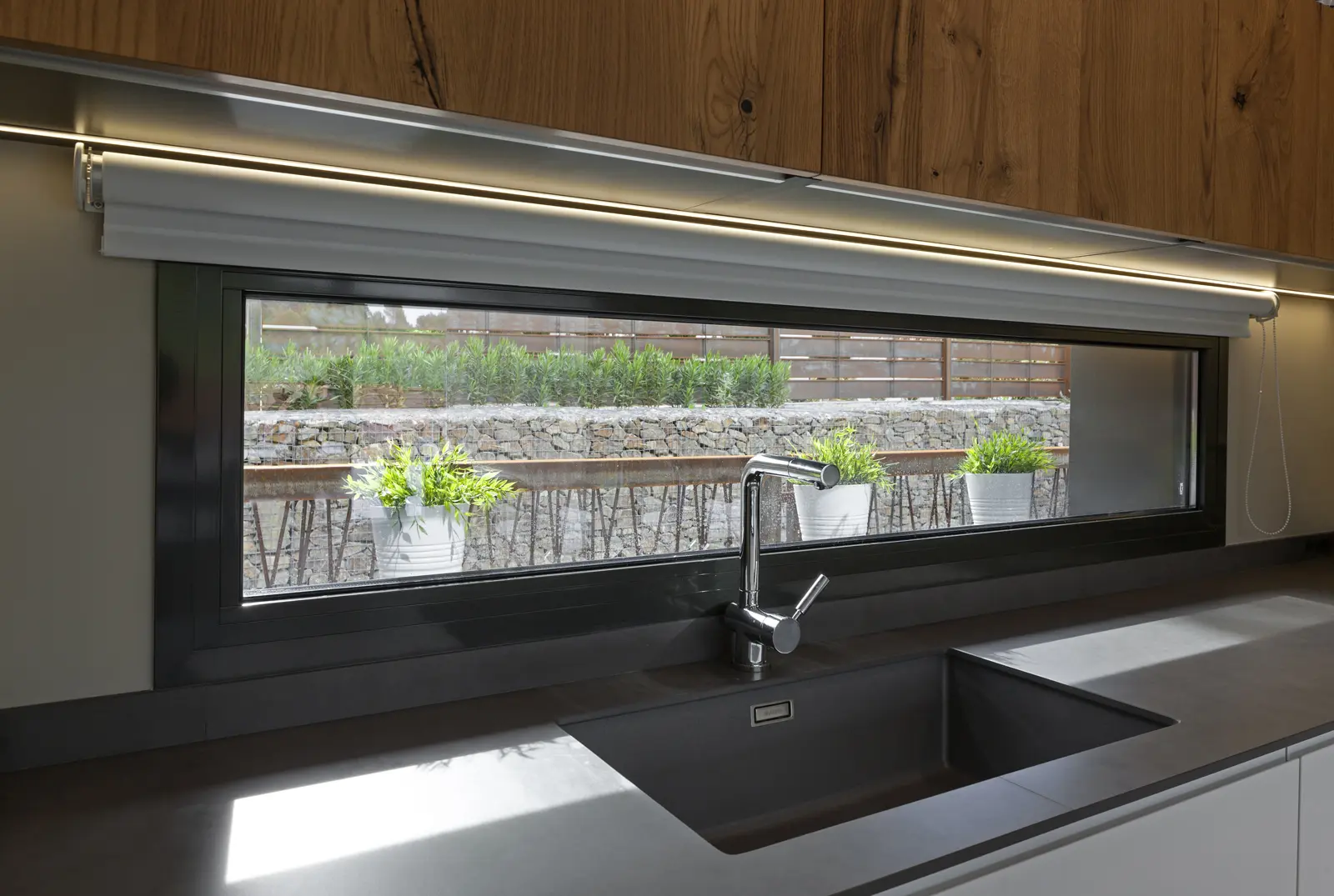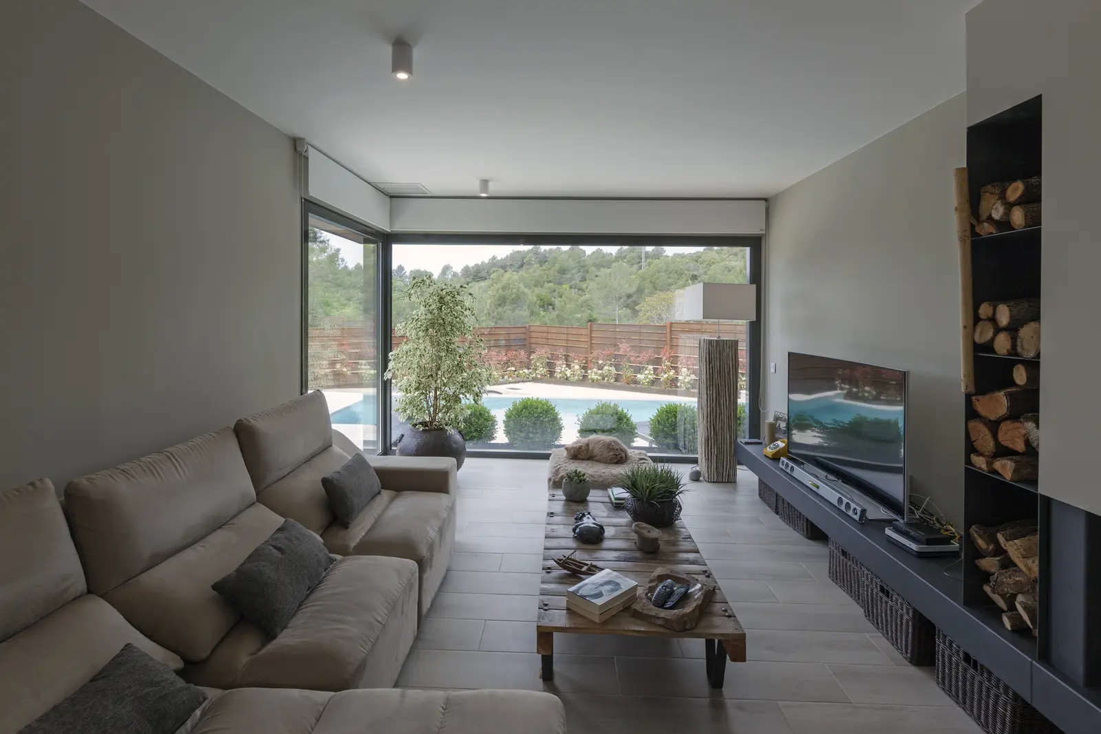 El interior propone una atmósfera luminosa, cálida y acogedora, donde las visuales están cuidadosamente enmarcadas: el estar se abre completamente al jardín y la piscina, integrando el paisaje como parte esencial de la vida diaria. Desde la cocina, una ventana corrida enmarca un plano vegetal que aporta profundidad y serenidad. Cada espacio responde a una lógica de eficiencia y confort duradero, atributos esenciales del sistema constructivo Hormipresa.