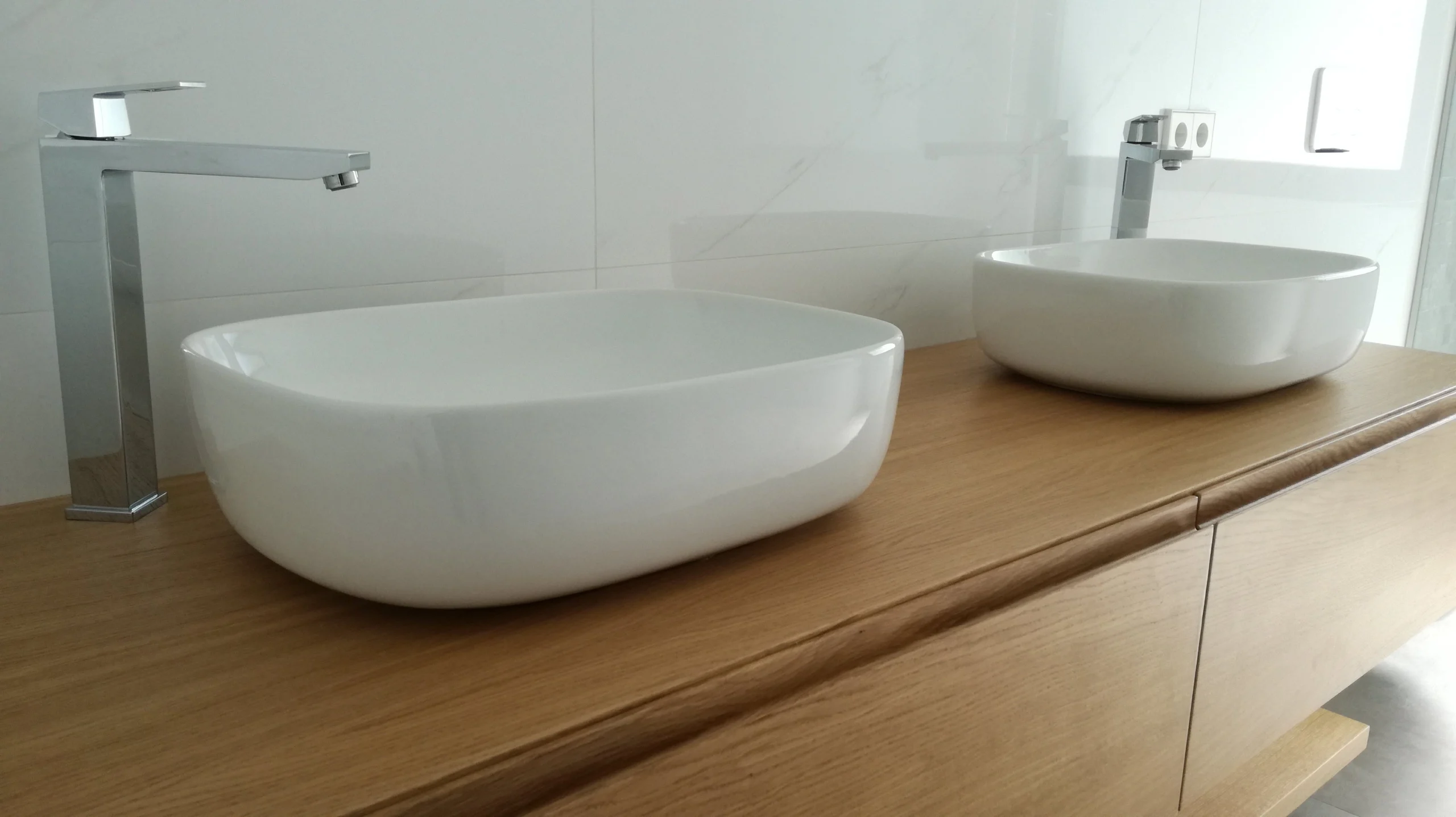 La entrada principal se enfatiza mediante un volumen vertical en el eje, revestido en madera, que introduce calidez y escala humana al conjunto. Este gesto contrasta con la blancura uniforme del resto del volumen y actúa como elemento jerárquico en la fachada principal.