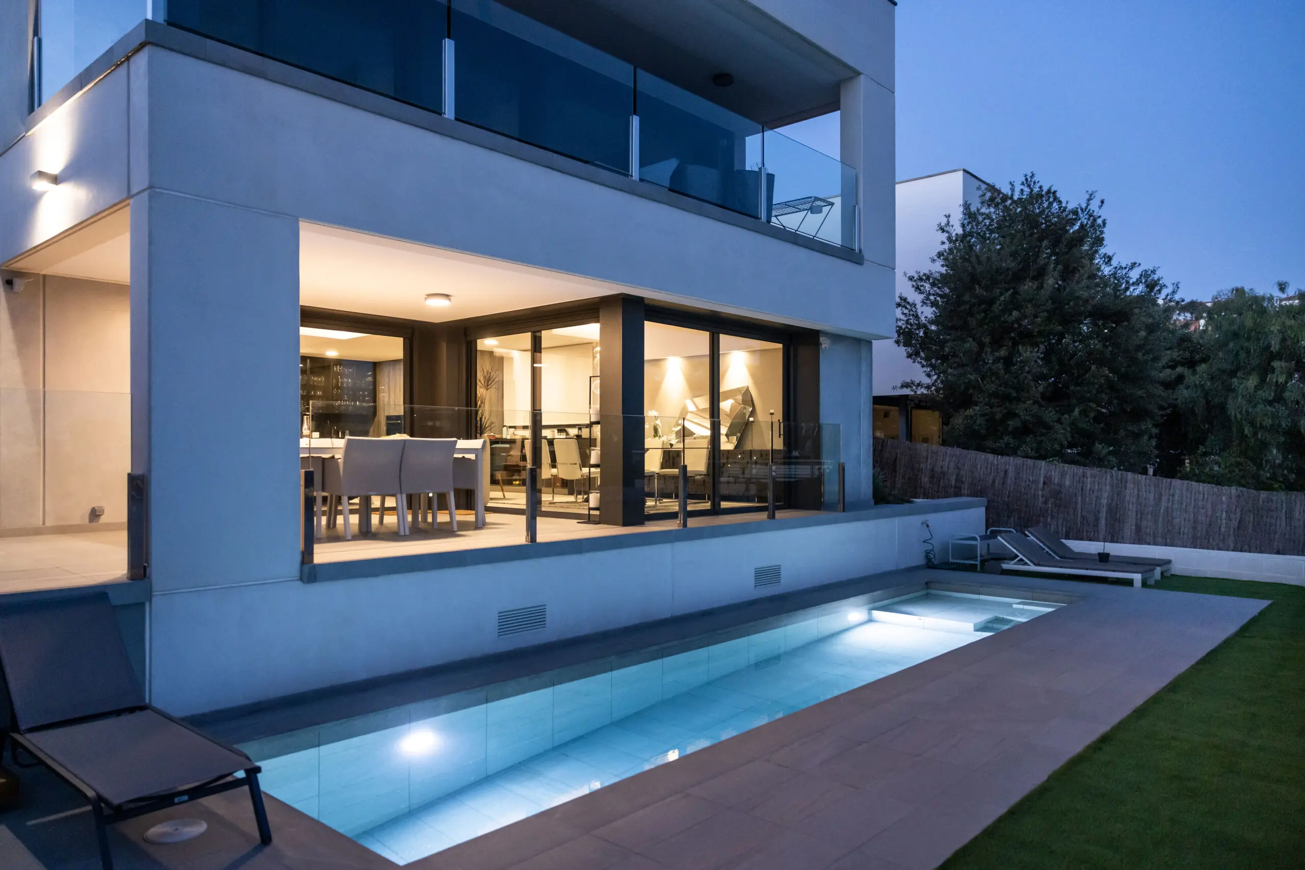 Esta moderna casa unifamiliar está situada en la Costa del Maresme, junto a Barcelona.
