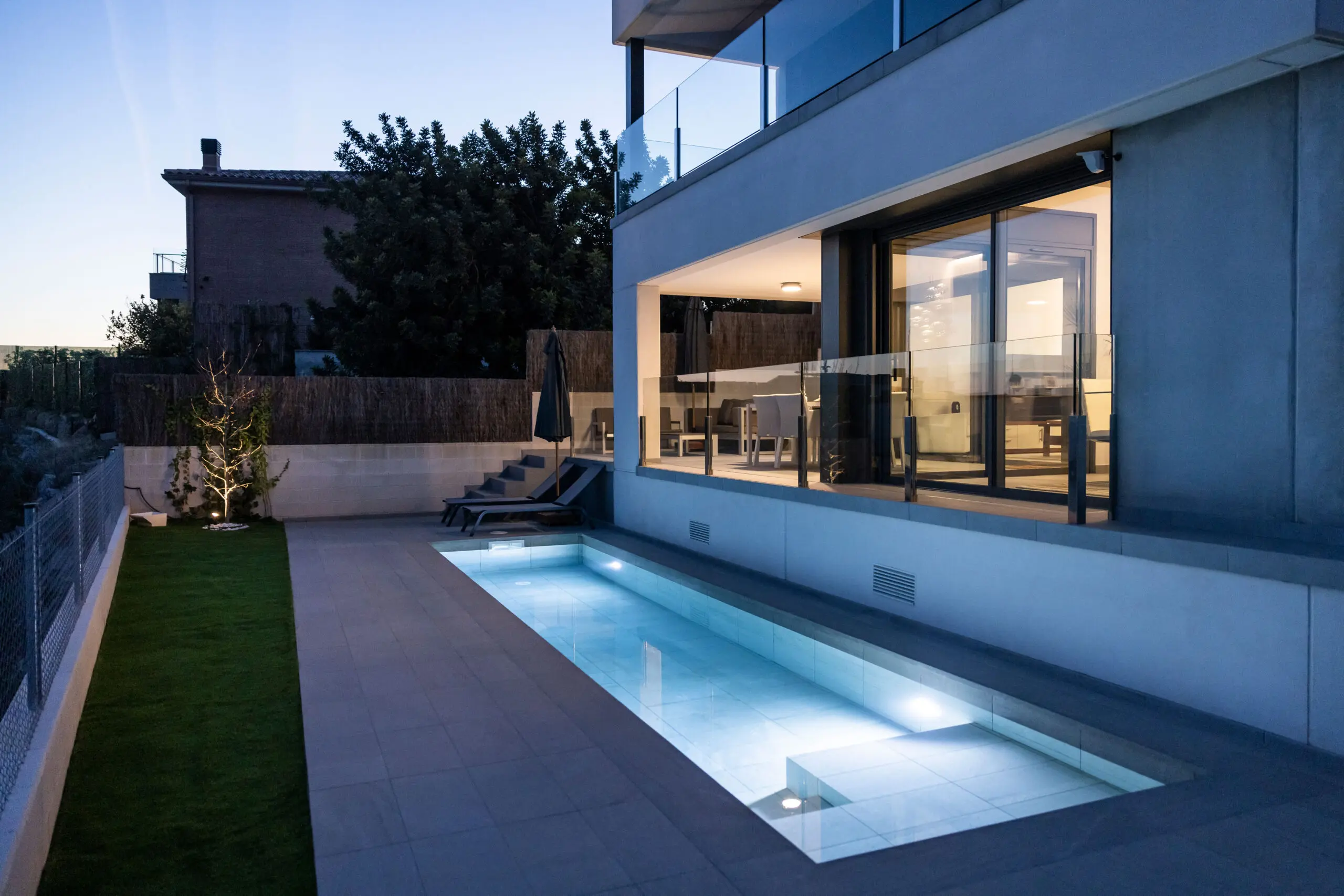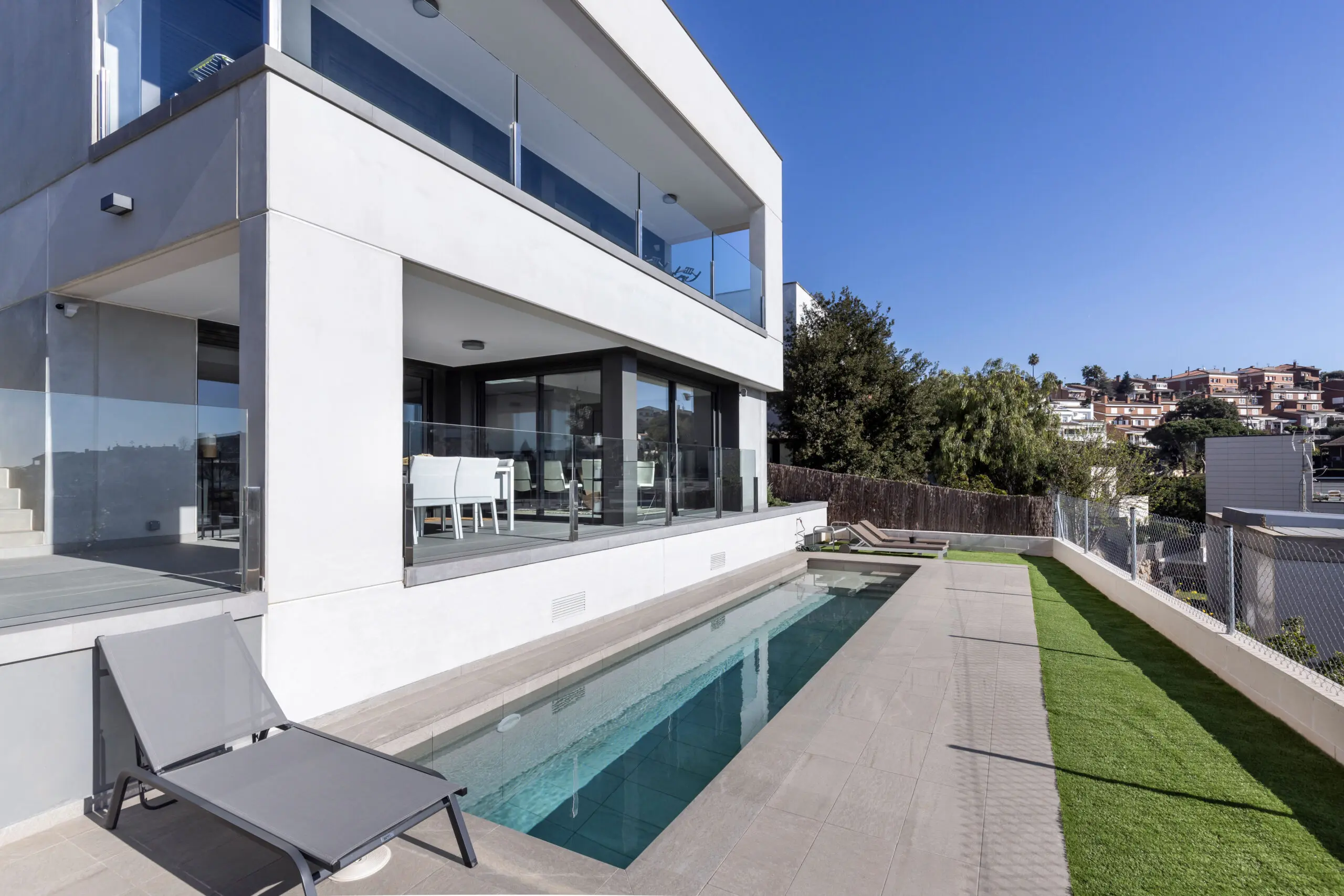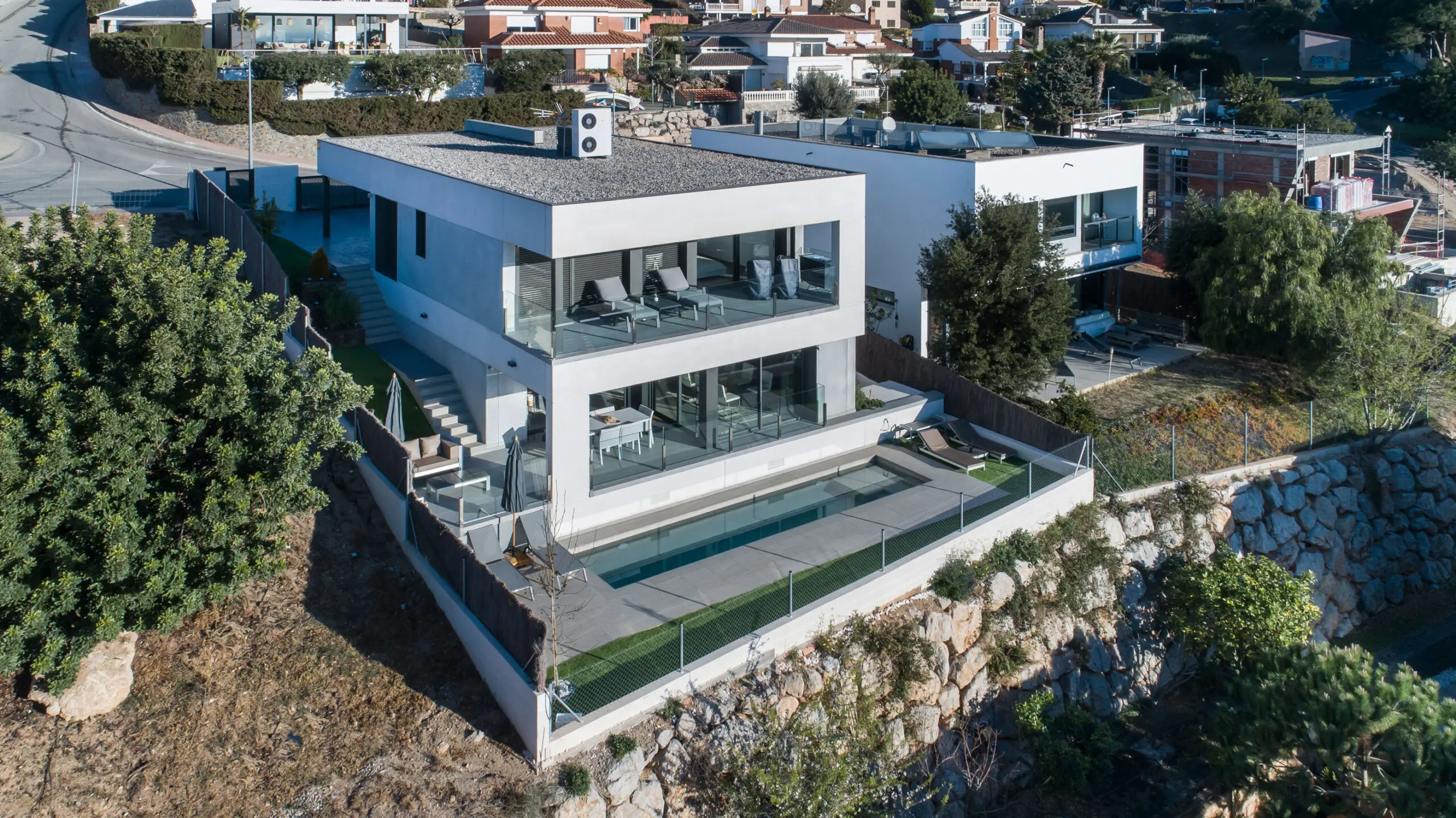 Esta moderna casa unifamiliar está situada en la Costa del Maresme, junto a Barcelona.