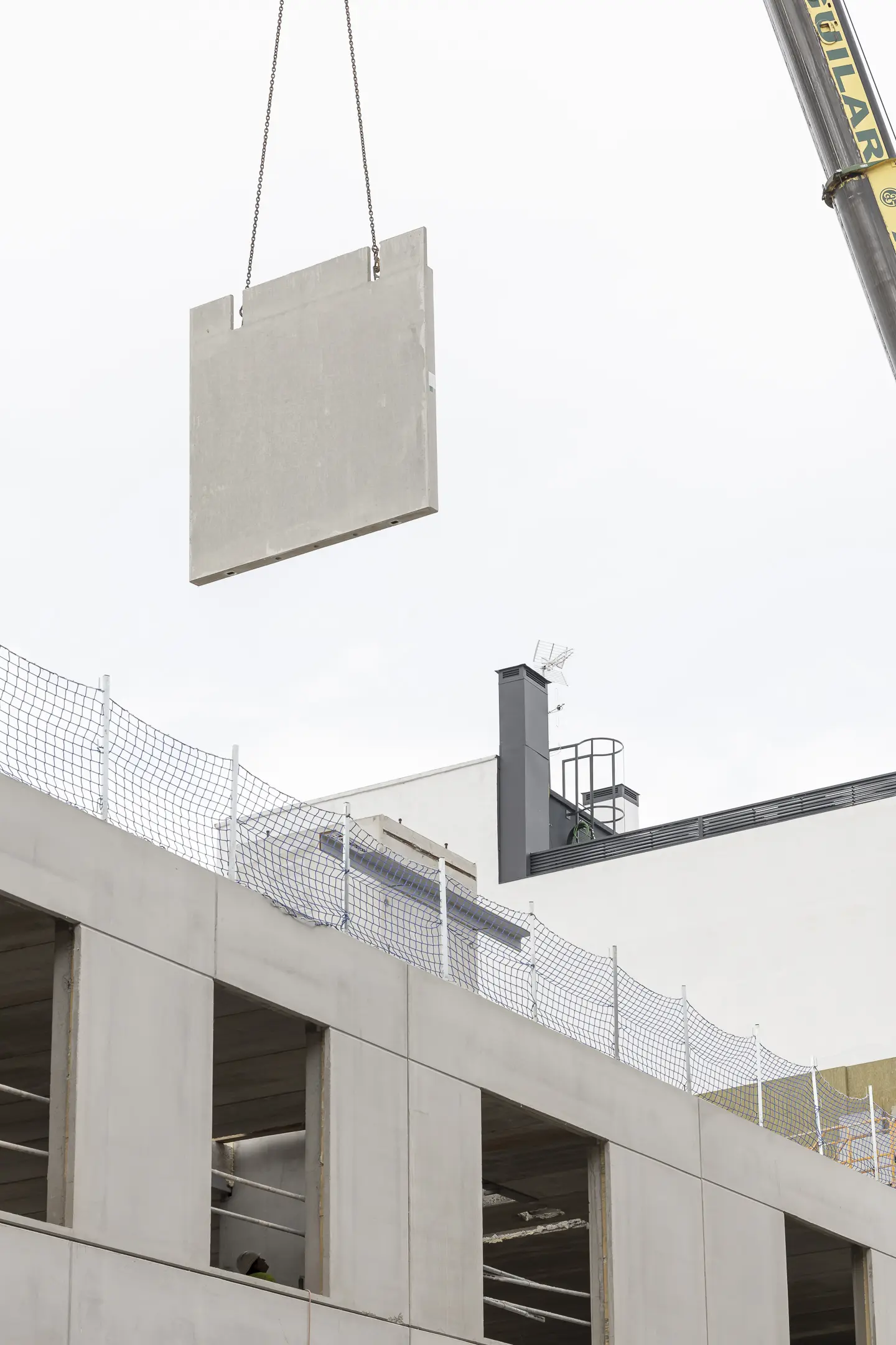 Con un 52 % del volumen estructural construido con prefabricado de hormigón (más de 1.400 m³), este edificio no solo responde a los requisitos técnicos del estándar Passivhaus, sino que lo hace desde una visión de futuro: colaborativa, digital, industrializada y sostenible.
